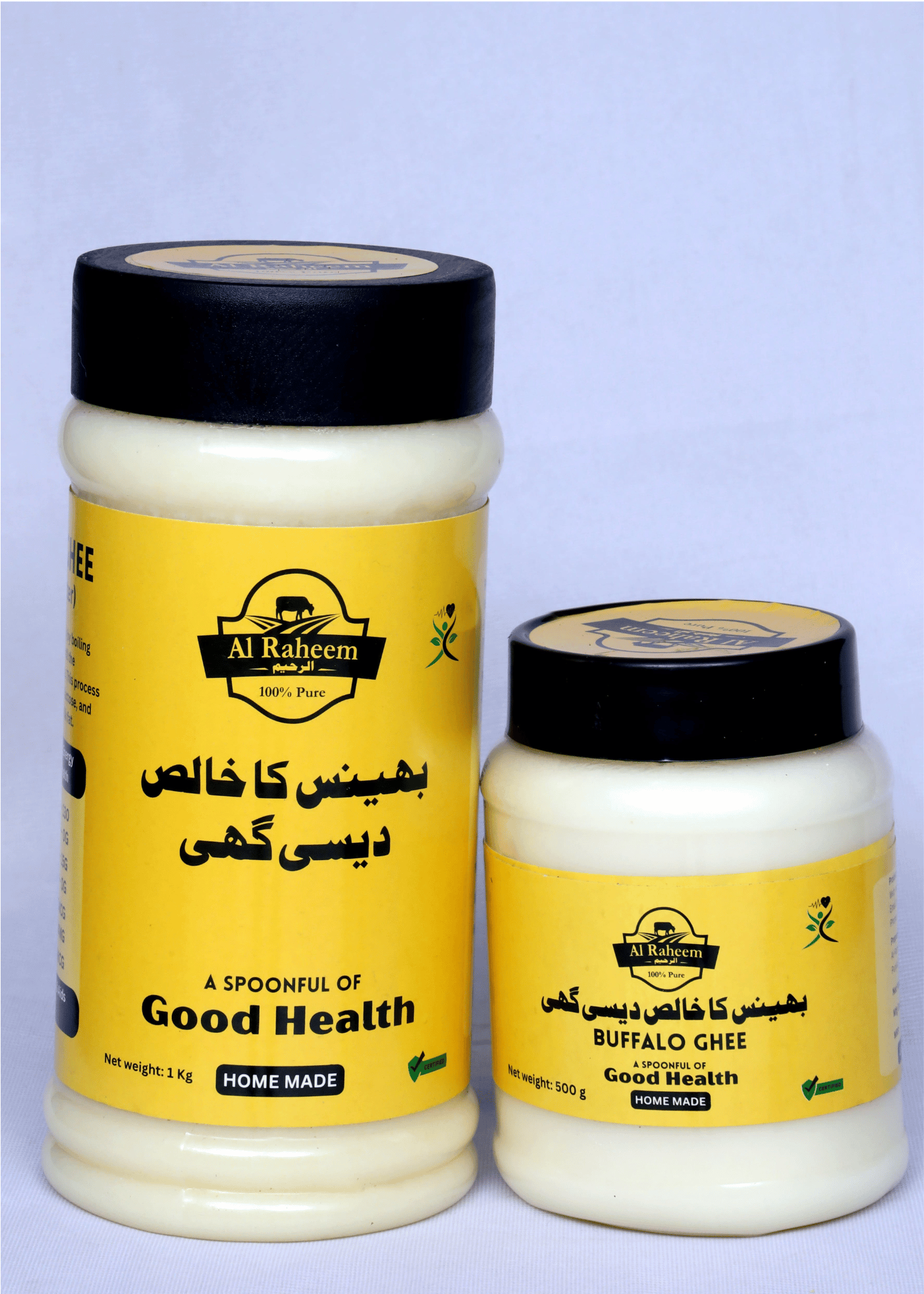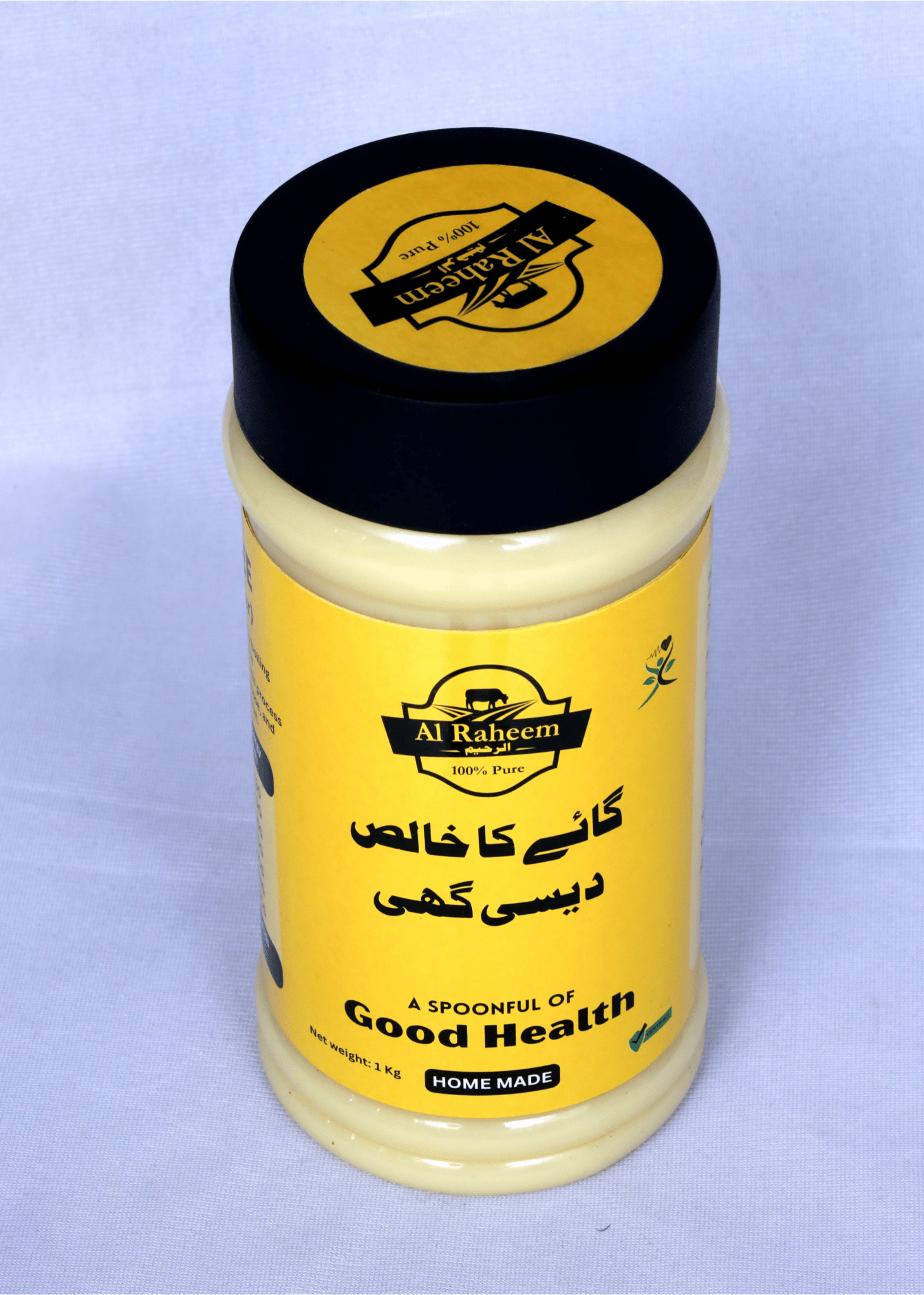 "خالص دیسی گھی – تازہ بھینس کے دودھ سے روایتی طریقے سے تیار کردہ۔ نہ کوئی کیمیکل، نہ ملاوٹ – ہر چمچ میں ذائقہ اور صح"